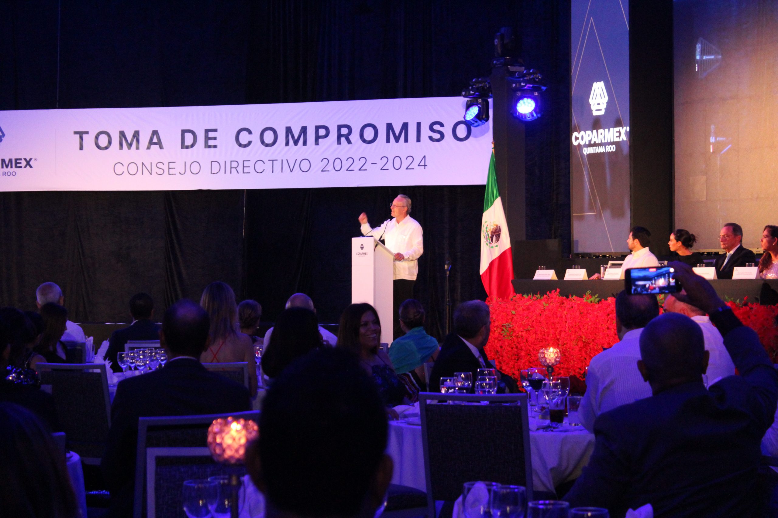 Empresarios e invitados especiales fueron testigos de la toma de compromiso del Consejo Directivo de COPARMEX Quintana Roo para el ejercicio 2022-2023. Los testigos de honor del evento fueron, José Medina, Presidente Nacional del Organismo, acompañado de Mara Lezama, gobernadora del estado de Quintana Roo, la presidenta municipal de Benito Juárez, Ana Patricia Peralta de la Peña. Los asistentes felicitaron a la Mtra. Angélica Frías por su excelente compromiso como presidenta del centro empresarial de Quintana Roo.